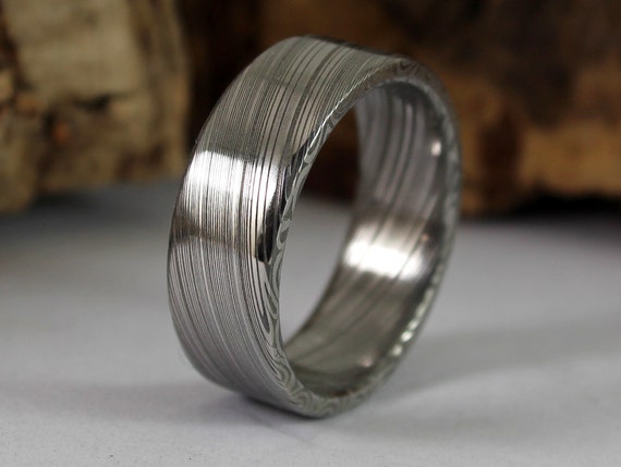 316 and 304 steel are assorted make a ring mens. This sleek woodgrain Damascus steel wedding band is a smart and modern choice for any groom. Damascus Wedding Band - Damascus Steel Mens Wedding - Damascus Steel Rose Gold Mens Wedding Band - 24mm Thickness HusneenArts 7 11599 FREE shipping Authentic Forged.